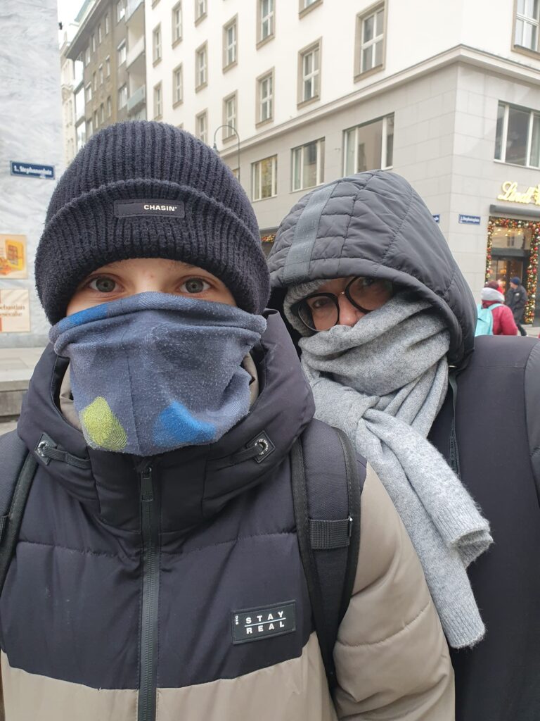 Wir erkundeten die Innenstadt, bewunderten die prachtvollen Gebäude, erfuhren viel über die Geschichte des Stephansdoms, spazierten über den Heldenplatz und machten auch eine historische Reise bei Time Travel. Trotz der niedrigen Temperaturen hielten wir tapfer durch – dick eingepackt mit Schals, Mützen und Handschuhen.