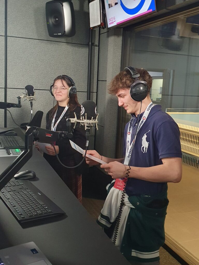 Ein Highlight war der Besuch im Ö3 Studio im ORF Zentrum am Küniglberg. Die SchülerInnen durften (in einem eigenen Studio) die Nachrichten präsentieren – inklusive Wetterbericht und Verkehrsfunk.